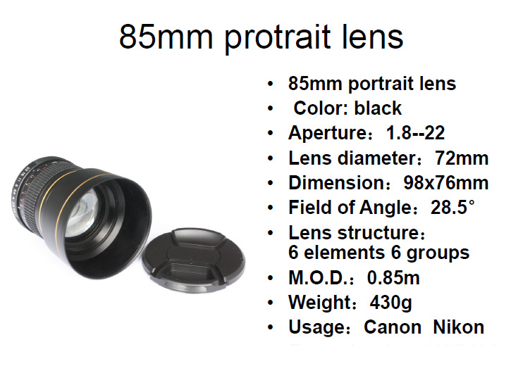 עדשת 85 מ"מ F1.8 Canon Nikon, 85 מ"מ 1.8 היא הסטנדרט לעדשות דיוקן.