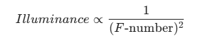לכן, אם נשווה עדשת F2.0 לעדשת F1.0, החישוב עבור ההבדל בכניסת האור נראה כך: